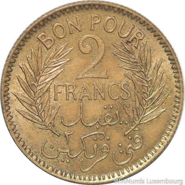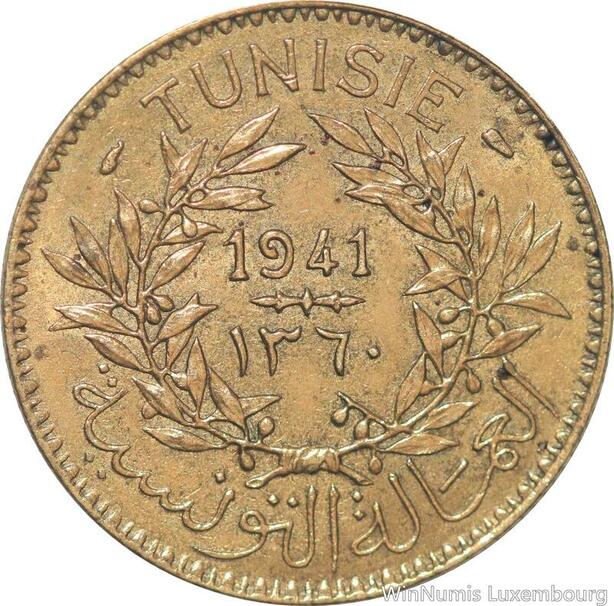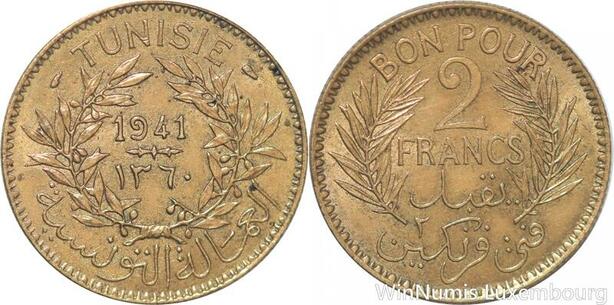 R8076 Tunisia 2 Francs AH 1360 1941 A Paris -> Make offer