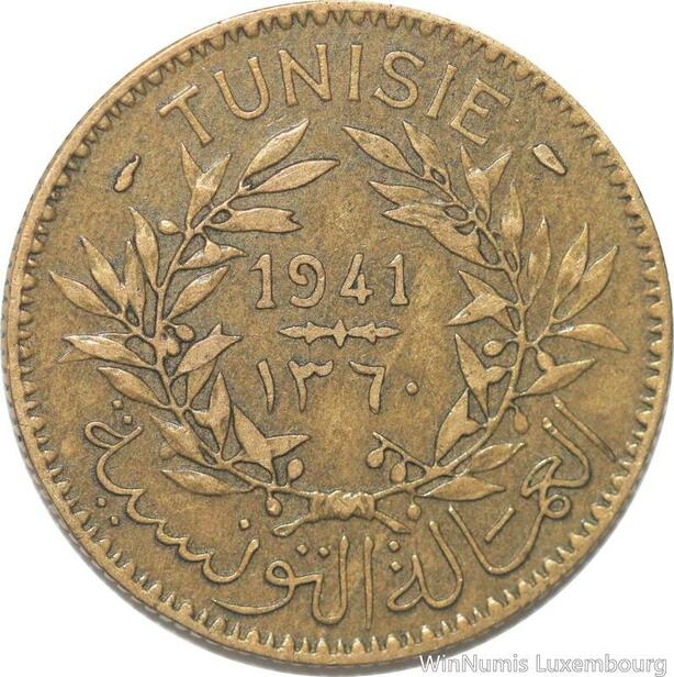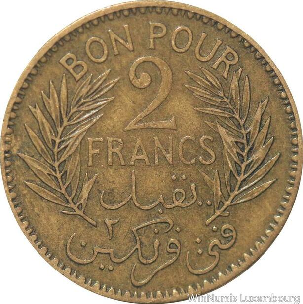R8077 Tunisia 2 Francs AH 1360 1941 A Paris -> Make offer