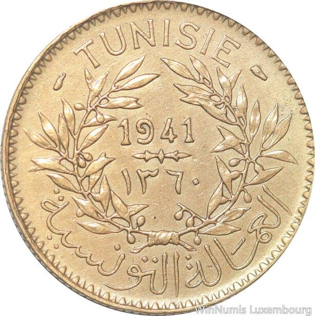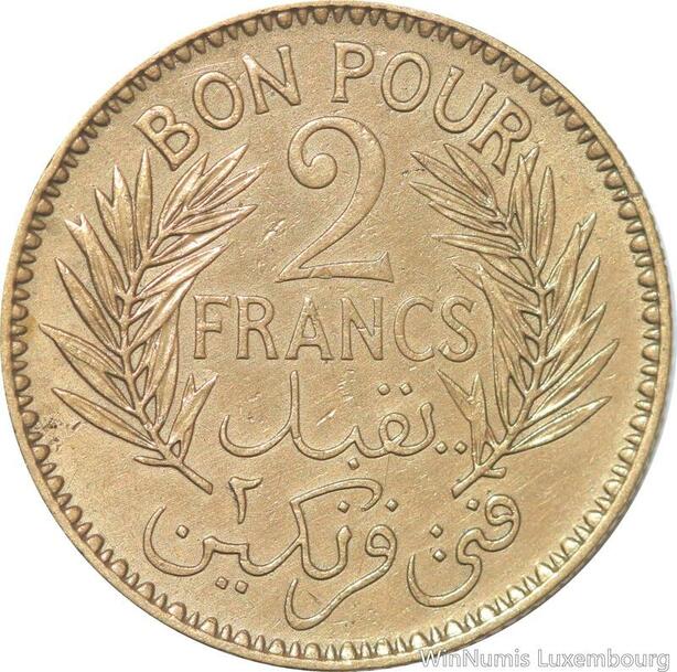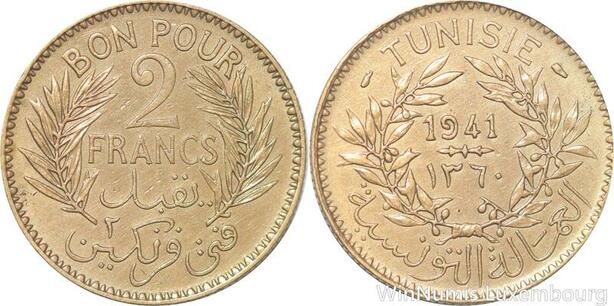 R8079 Tunisia 2 Francs AH 1360 1941 A Paris AU -> Make offer