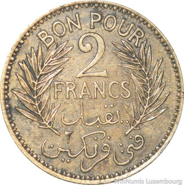 R8081 Tunisia 2 Francs AH 1360 1941 A Paris -> Make offer