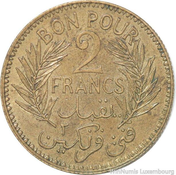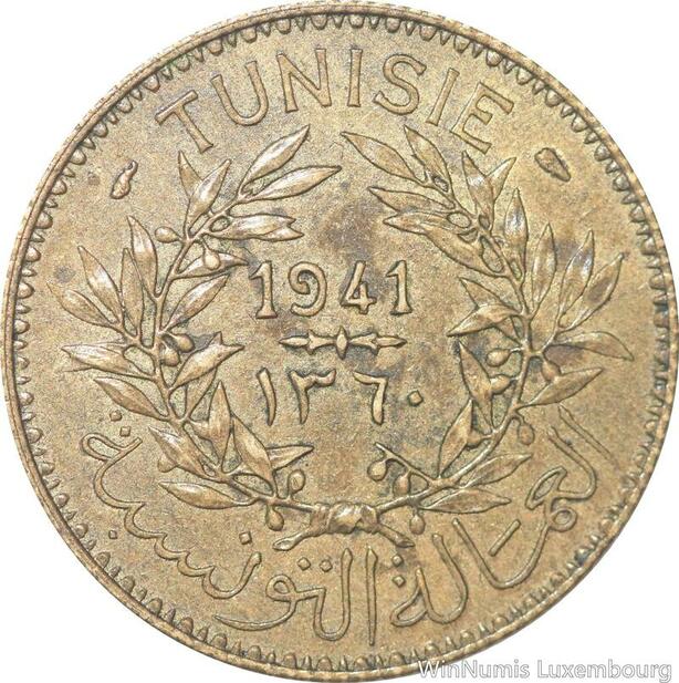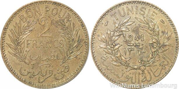 R8082 Tunisia 2 Francs AH 1360 1941 A Paris -> Make offer