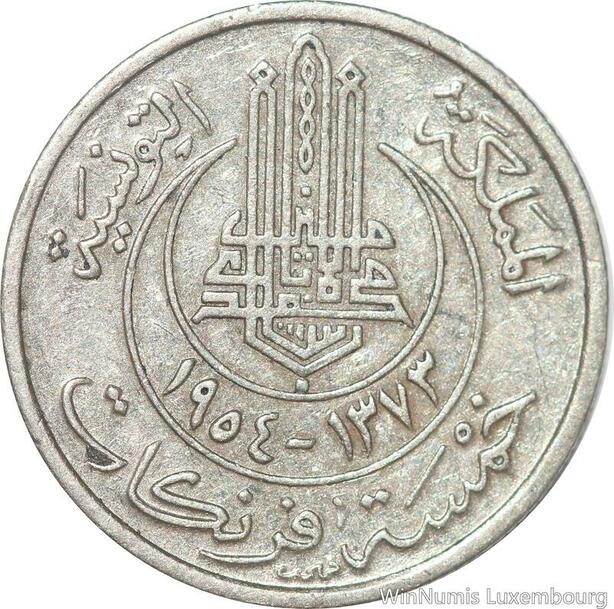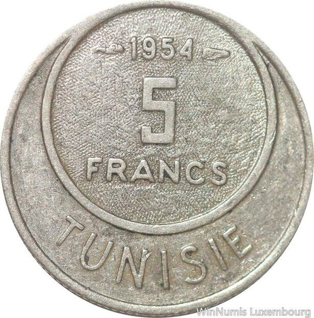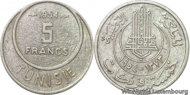 R8092 Tunisia 5 Francs Muhammad al-Amin Bey AH 1373 1954 Paris