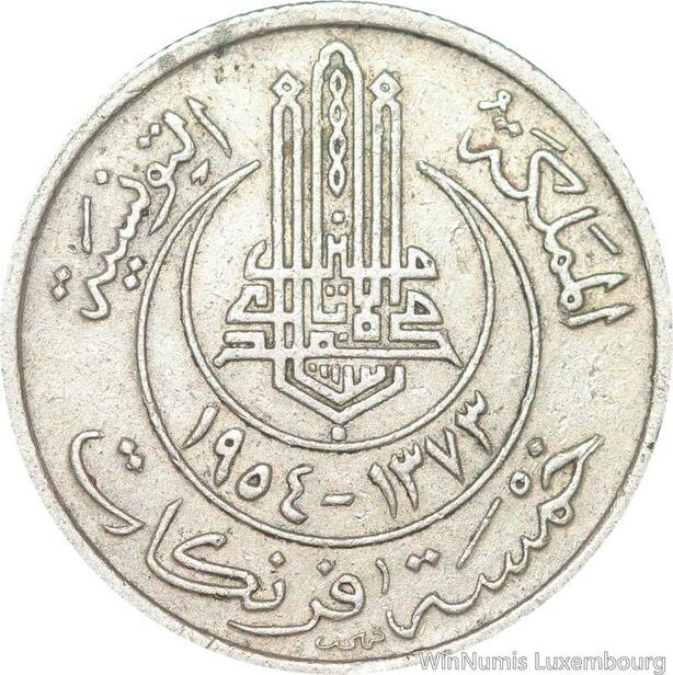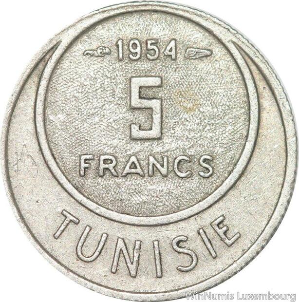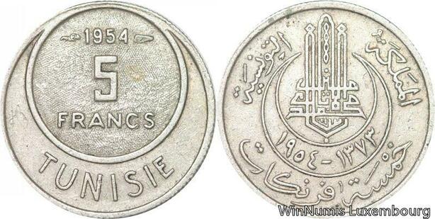 R8098 Tunisia 5 Francs Muhammad al-Amin Bey AH 1373 1954 Paris