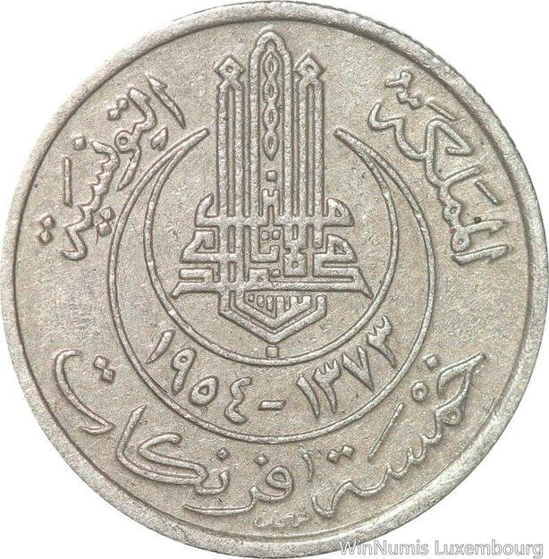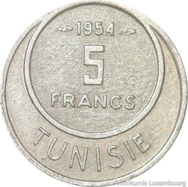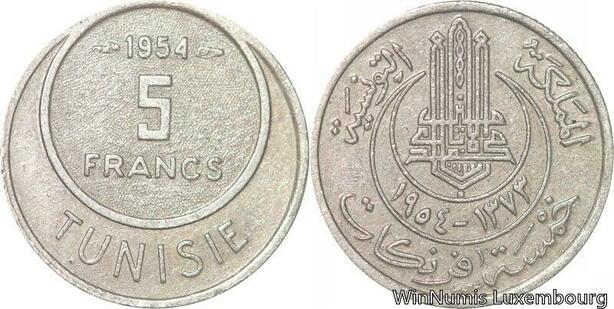 R8099 Tunisia 5 Francs Muhammad al-Amin Bey AH 1373 1954 Paris