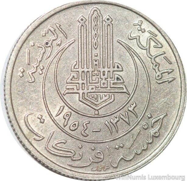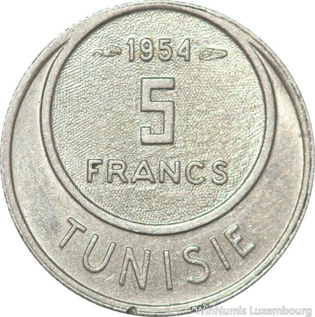 R8109 Tunisia 5 Francs Muhammad al-Amin Bey AH 1373 1954 Paris