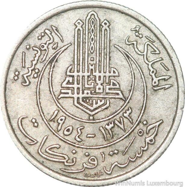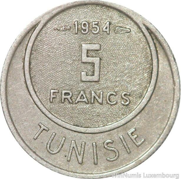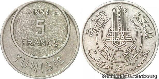 R8110 Tunisia 5 Francs Muhammad al-Amin Bey AH 1373 1954 Paris