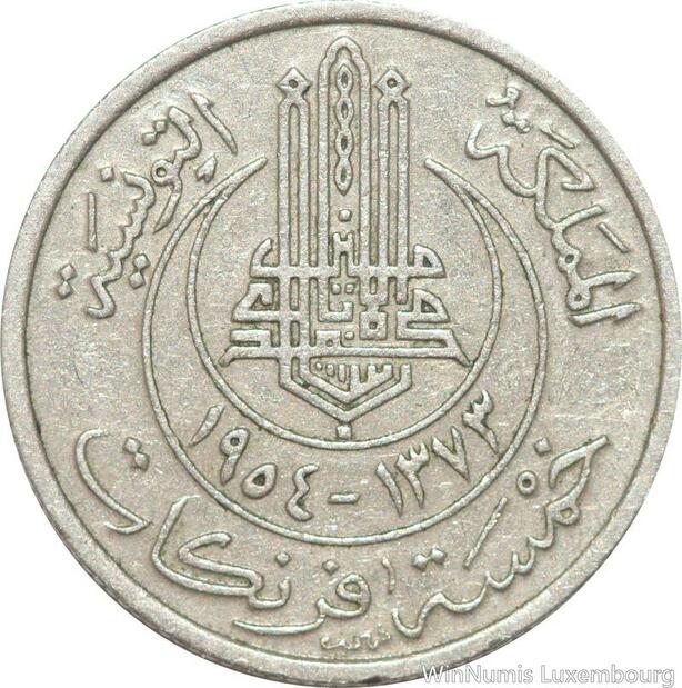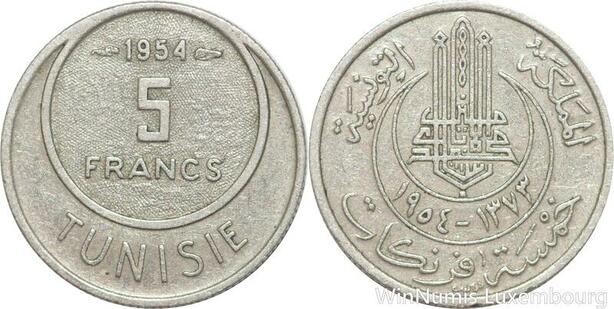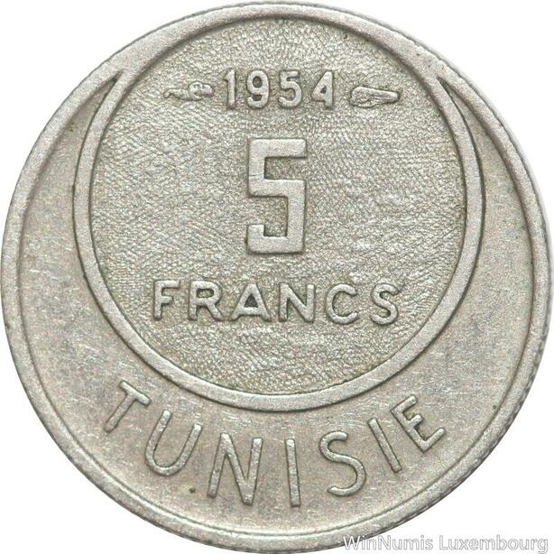 R8114 Tunisia 5 Francs Muhammad al-Amin Bey AH 1373 1954 Paris