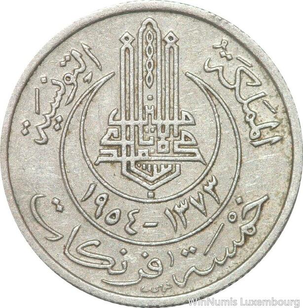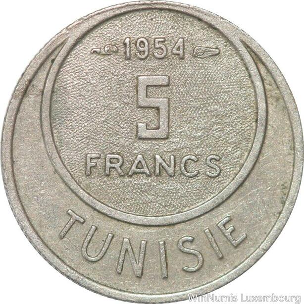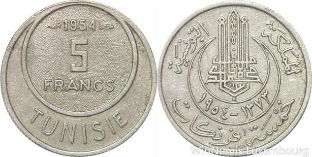 R8120 Tunisia 5 Francs Muhammad al-Amin Bey AH 1373 1954 Paris