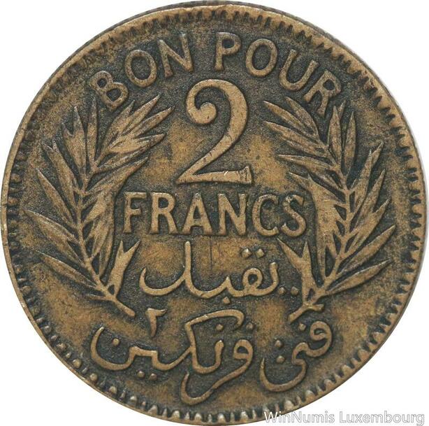 R8138 Tunisia 2 Francs AH 1340 1921 Paris -> Make offer
