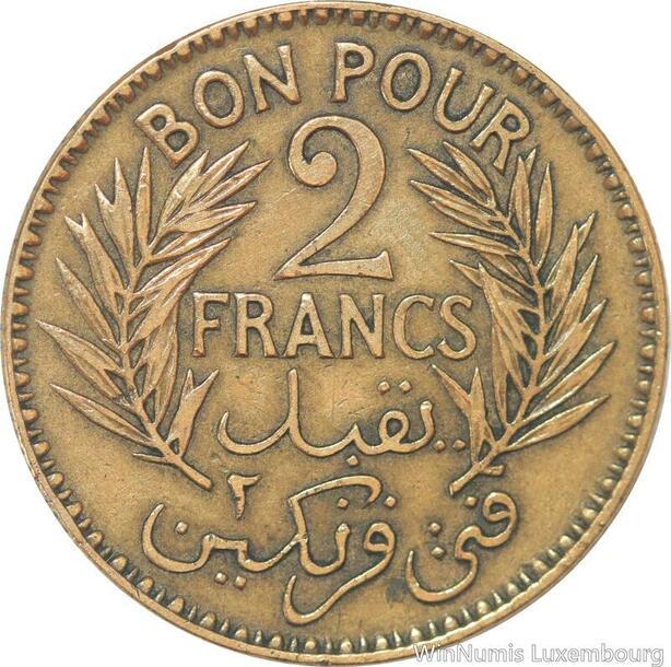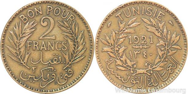 R8144 Tunisia 2 Francs AH 1340 1921 Paris -> Make offer
