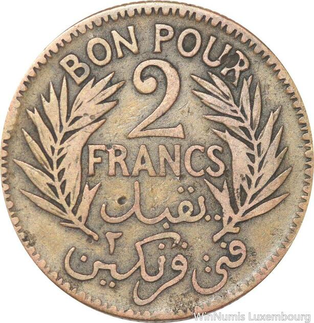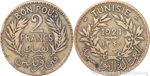 R8145 Tunisia 2 Francs AH 1340 1921 Paris -> Make offer