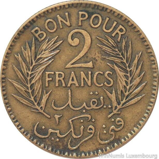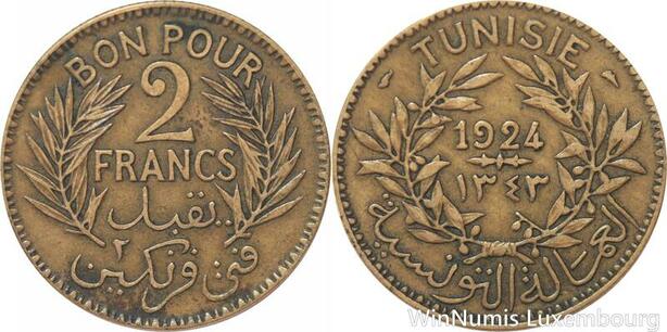 R8147 Tunisia 2 Francs AH 1343 1924 Paris -> Make offer