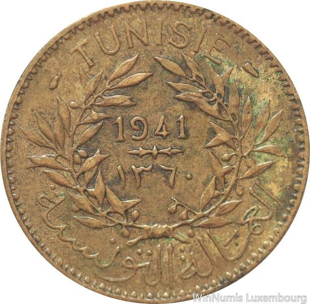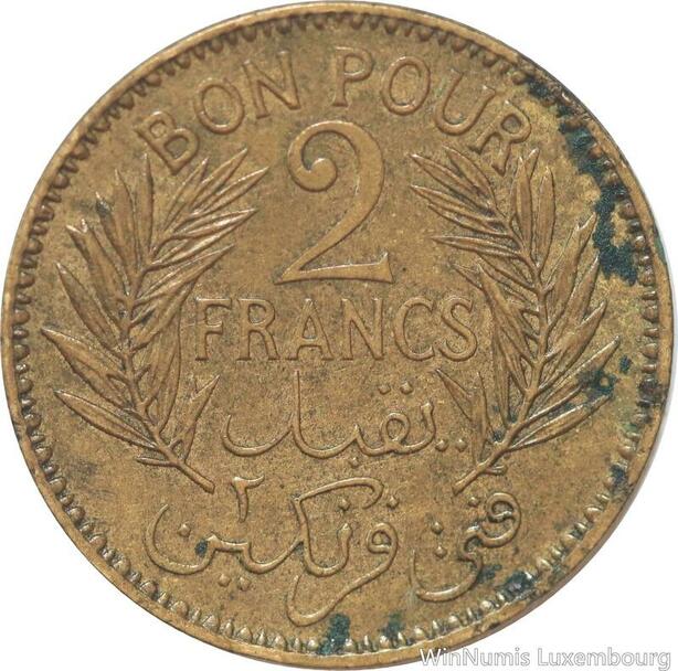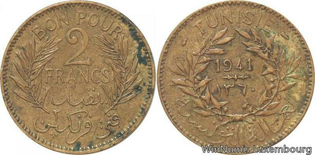 R8154 Tunisia 2 Francs AH 1360 1941 Paris -> Make offer