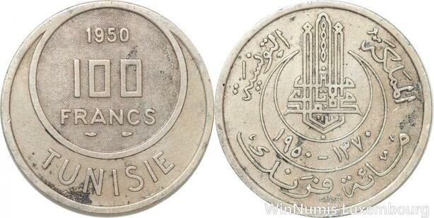 R8158 Tunisia 100 Francs Muhammad al-Amin Bey AH 1370 1950 A Paris -> Make offer