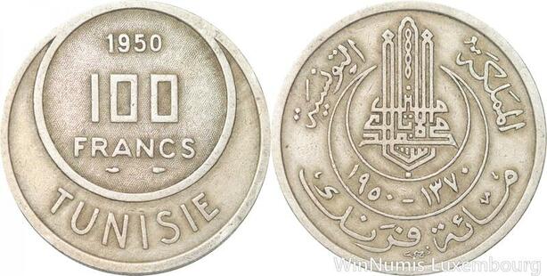 R8161 Tunisia 100 Francs Muhammad al-Amin Bey AH 1370 1950 A Paris -> Make offer