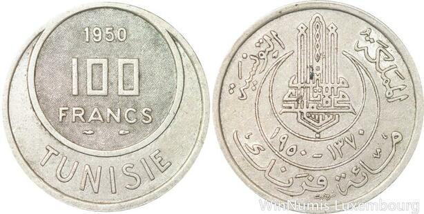 R8163 Tunisia 100 Francs Muhammad al-Amin Bey AH 1370 1950 A Paris -> Make offer