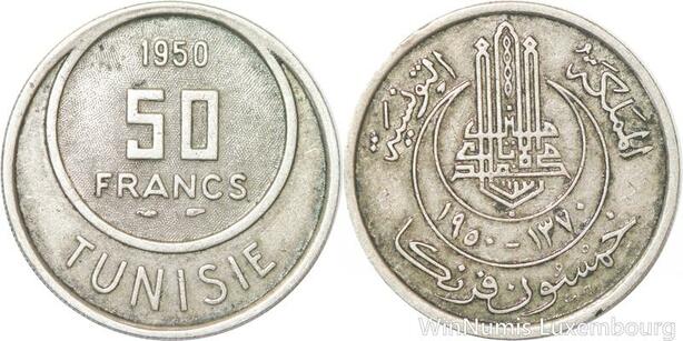 R8164 Tunisia 50 Francs Muhammad al-Amin Bey AH 1370 1950 A Paris -> Make offer