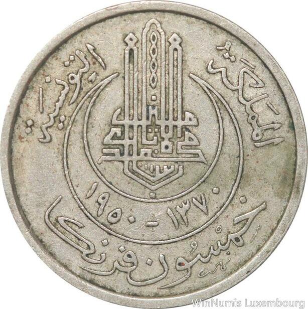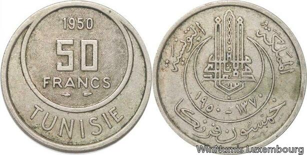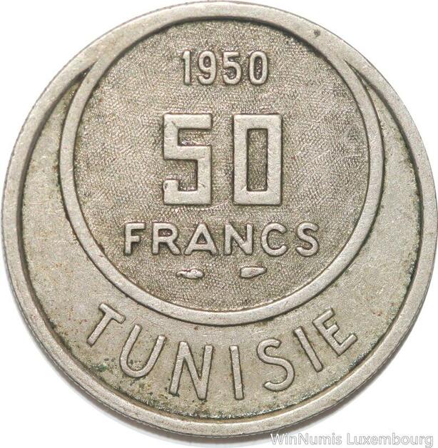 R8166 Tunisia 50 Francs Muhammad al-Amin Bey AH 1370 1950 A Paris -> Make offer