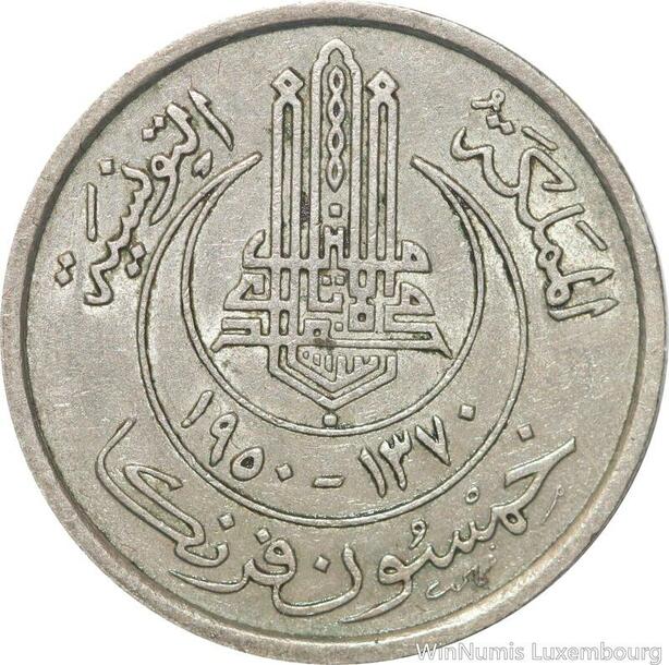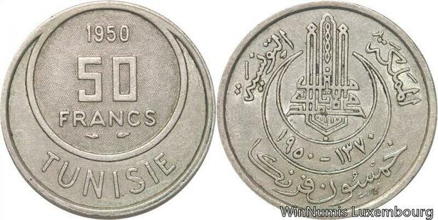 R8169 Tunisia 50 Francs Muhammad al-Amin Bey AH 1370 1950 A Paris -> Make offer