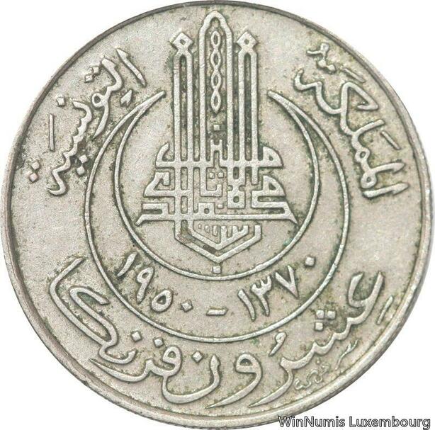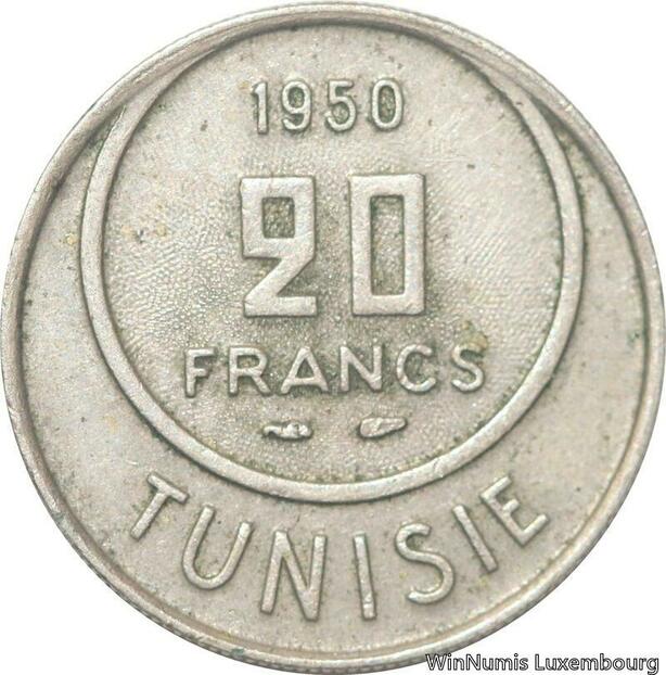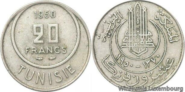R8175 Tunisia 20 Francs Muhammad al-Amin Bey AH 1370 1950 A Paris -> Make offer