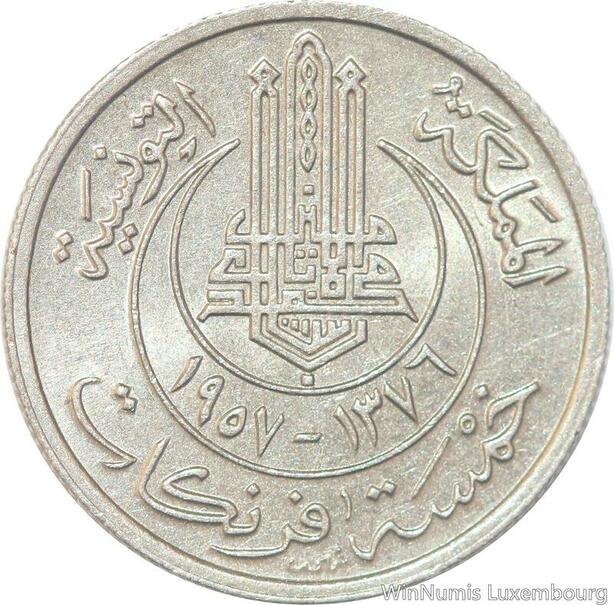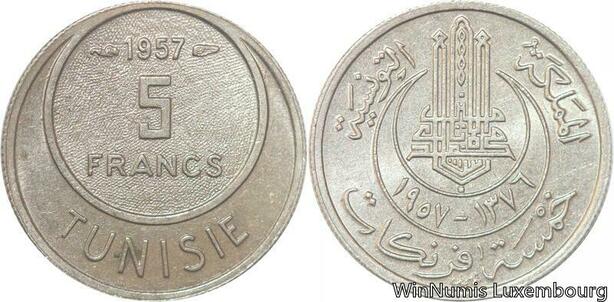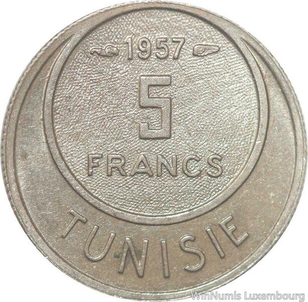 R8177 Tunisia 5 Francs Muhammad al-Amin Bey AH 1370 1950 A Paris AU -> M offer