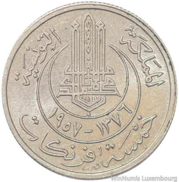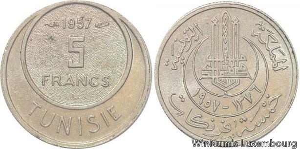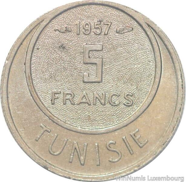 R8180 Tunisia 5 Francs Muhammad al-Amin Bey AH 1370 1950 A Paris AU -> M offer
