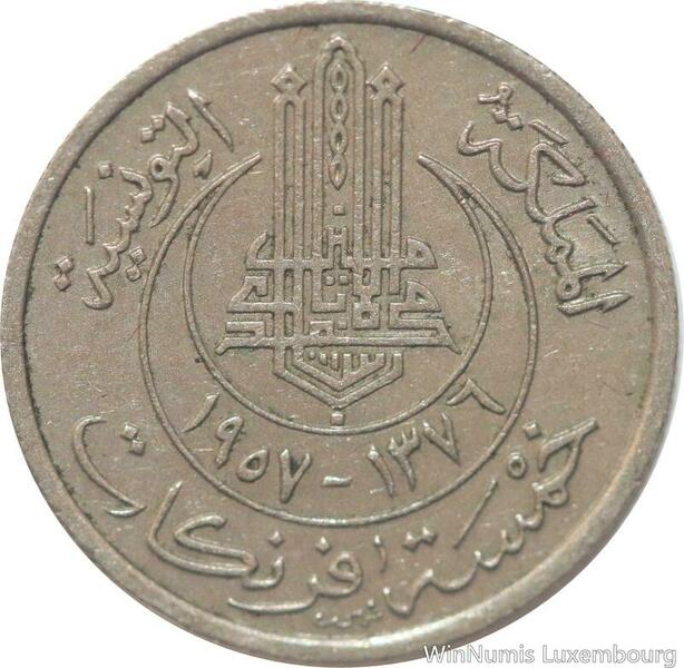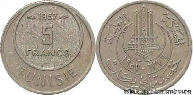 R8183 Tunisia 5 Francs Muhammad al-Amin Bey AH 1370 1950 A Paris -> Make offer