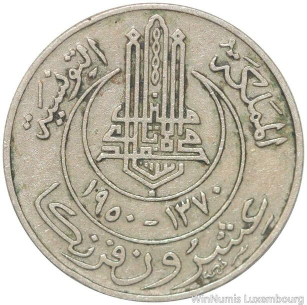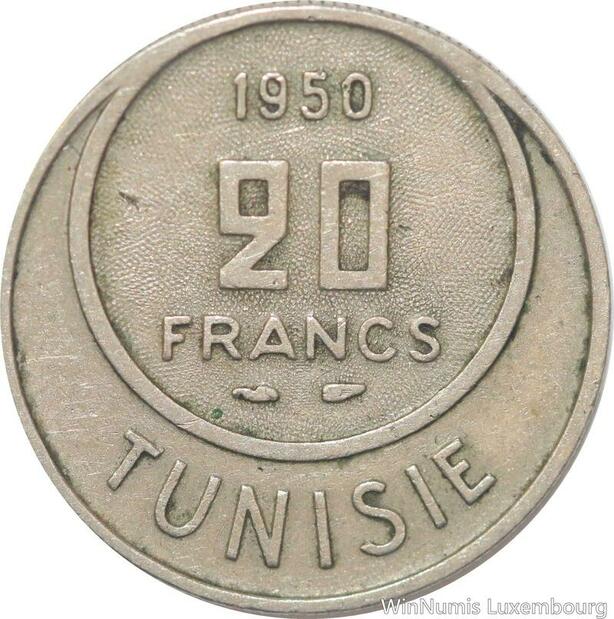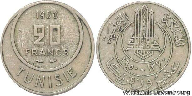 R8185 Tunisia 20 Francs Muhammad al-Amin Bey AH 1370 1950 A Paris -> Make offer