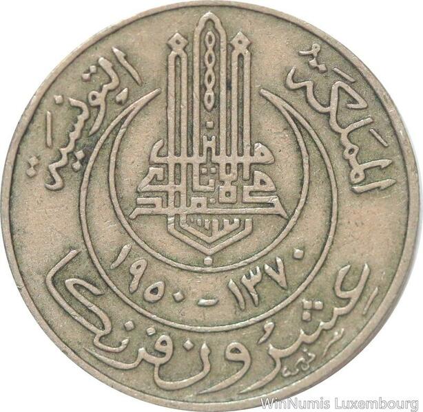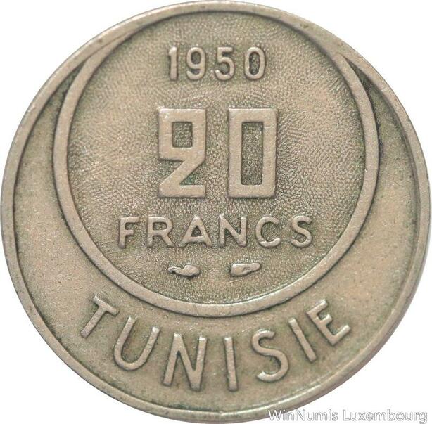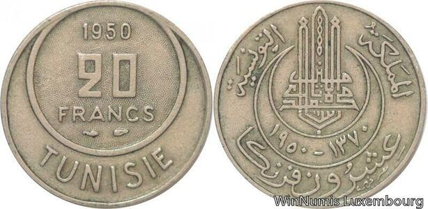 R8187 Tunisia 20 Francs Muhammad al-Amin Bey AH 1370 1950 A Paris -> Make offer