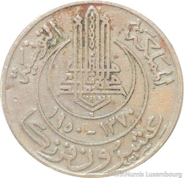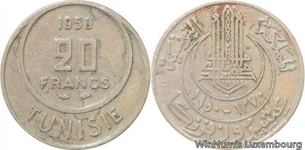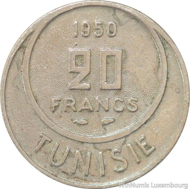 R8190 Tunisia 20 Francs Muhammad al-Amin Bey AH 1370 1950 A Paris -> Make offer