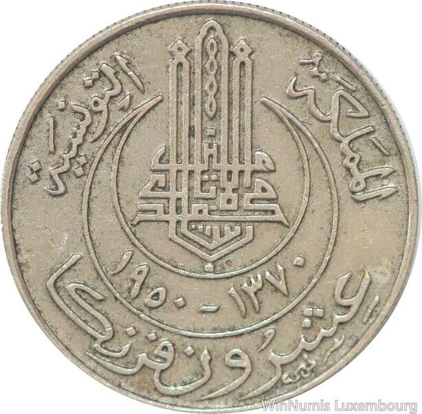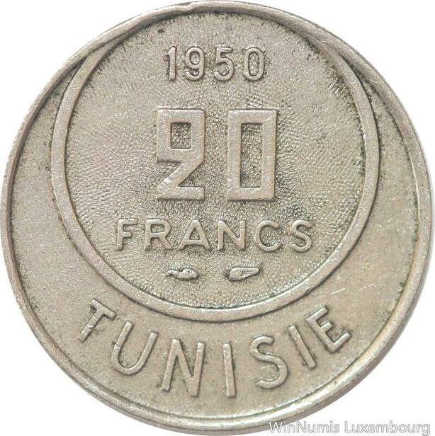 R8191 Tunisia 20 Francs Muhammad al-Amin Bey AH 1370 1950 A Paris -> Make offer