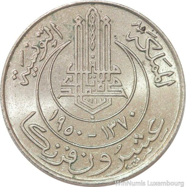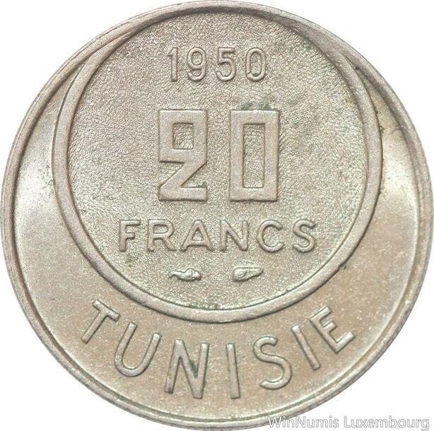 R8193 Tunisia 20 Francs Muhammad al-Amin Bey AH 1370 1950 A Paris -> Make offer