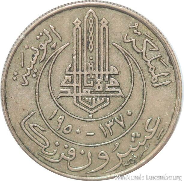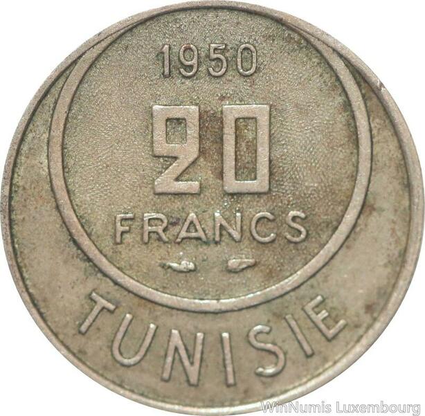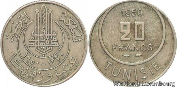 R8194 Tunisia 20 Francs Muhammad al-Amin Bey AH 1370 1950 A Paris -> Make offer