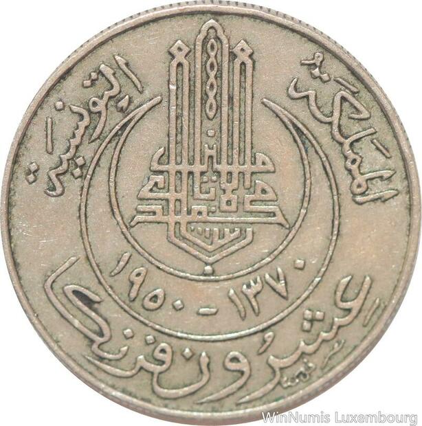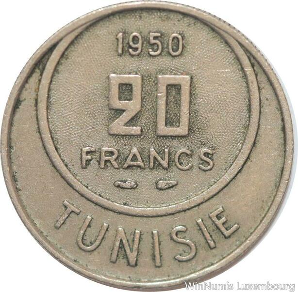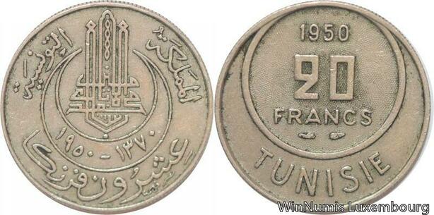 R8195 Tunisia 20 Francs Muhammad al-Amin Bey AH 1370 1950 A Paris -> Make offer