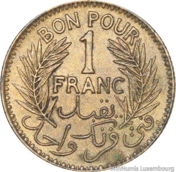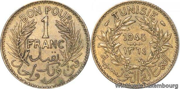 R8197 Tunisia 1 Franc AH 1364 1945 AU -> Make offer