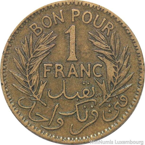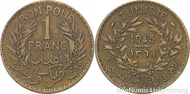 R8201 Tunisia 1 Franc AH 1364 1945 -> Make offer