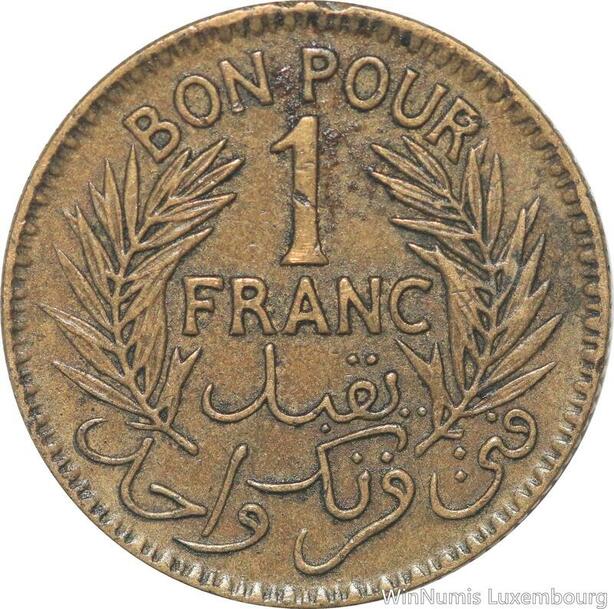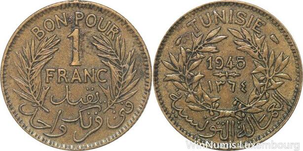 R8202 Tunisia 1 Franc AH 1364 1945 -> Make offer