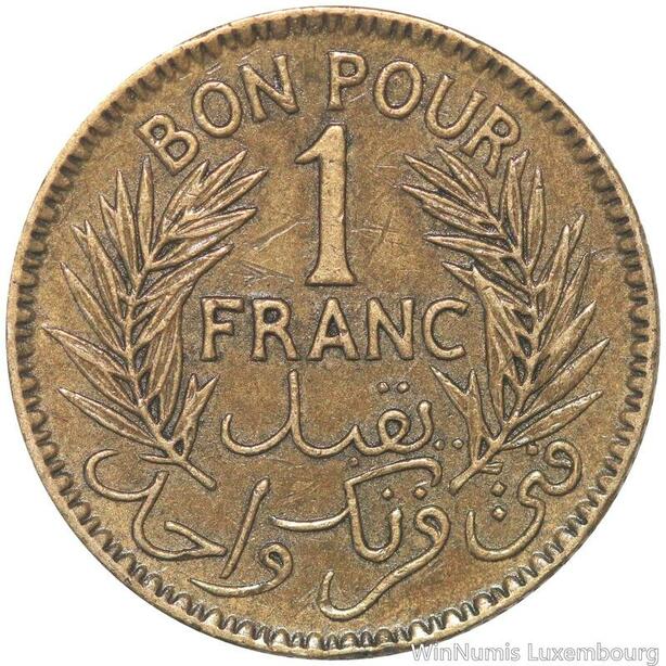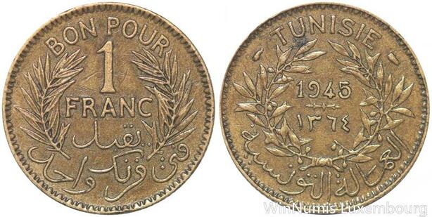 R8205 Tunisia 1 Franc AH 1364 1945 -> Make offer