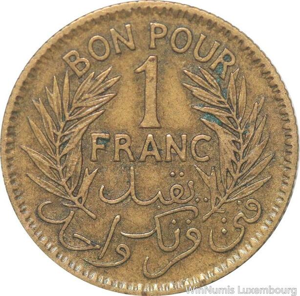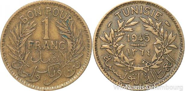 R8207 Tunisia 1 Franc AH 1364 1945 -> Make offer