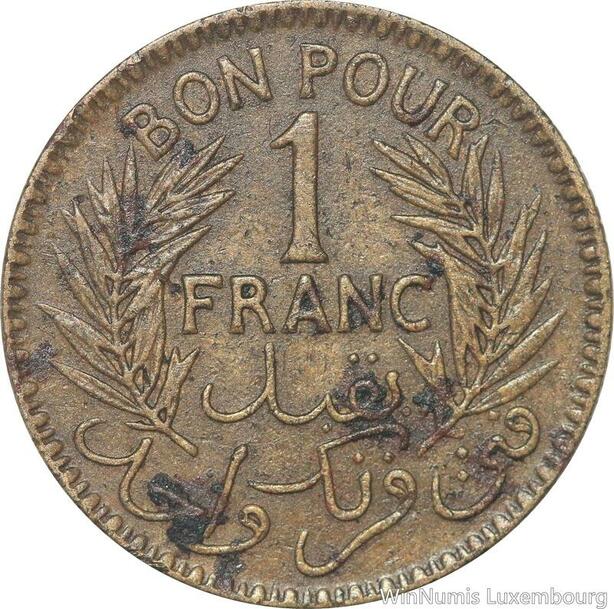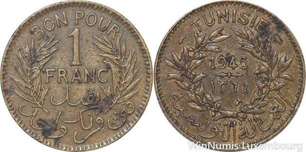 R8208 Tunisia 1 Franc AH 1364 1945 -> Make offer