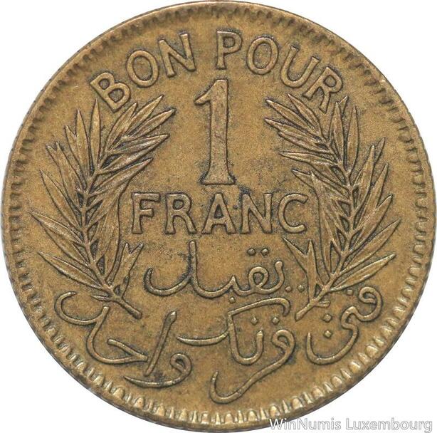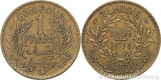 R8212 Tunisia 1 Franc AH 1364 1945 -> Make offer