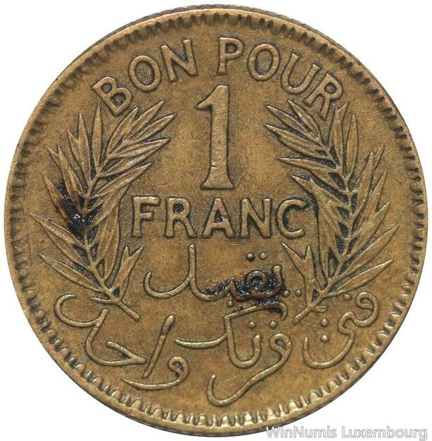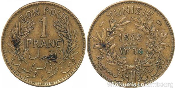 R8218 Tunisia 1 Franc AH 1364 1945 -> Make offer