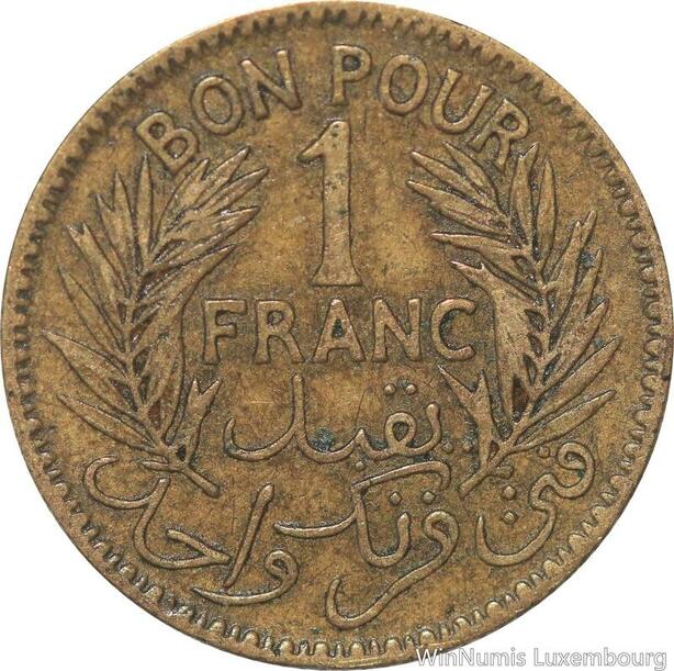 R8220 Tunisia 1 Franc AH 1364 1945 -> Make offer
