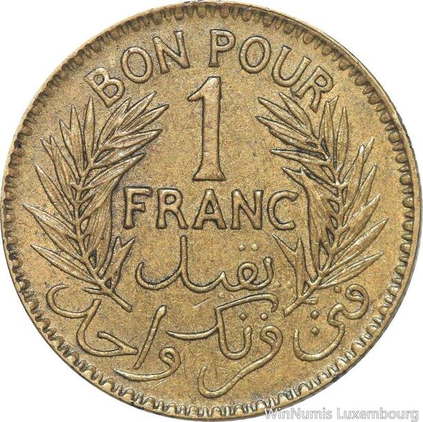 R8226 Tunisia 1 Franc AH 1364 1945 AU -> Make offer