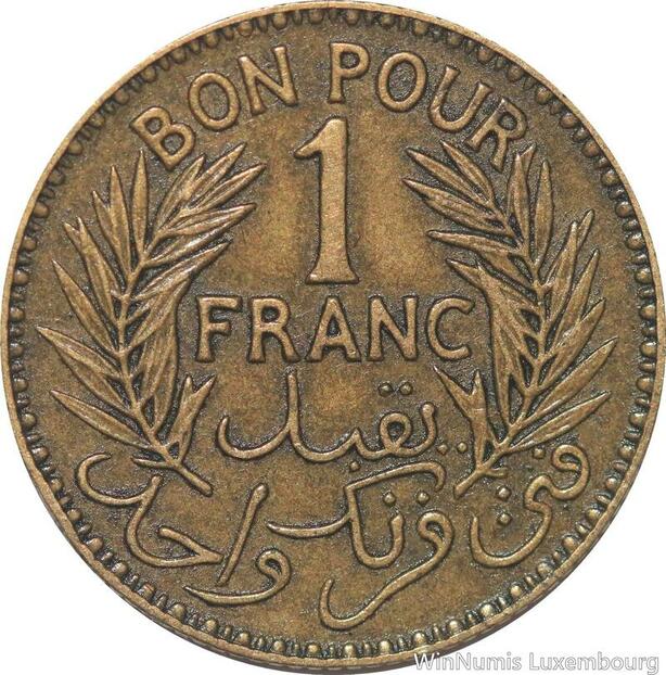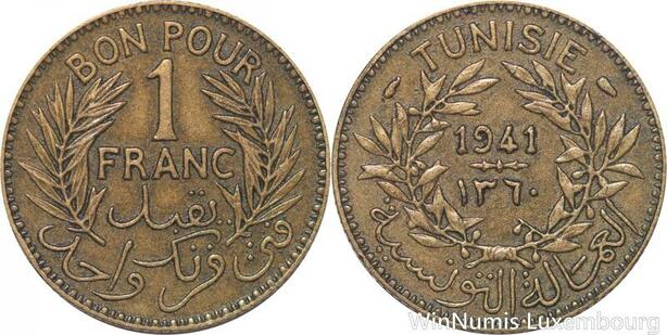 R8227 Tunisia 1 Franc AH 1360 1941 AU -> Make offer