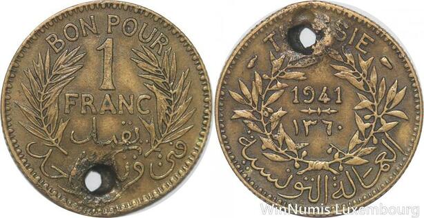 R8229 Tunisia 1 Franc AH 1360 1941 -> Make offer