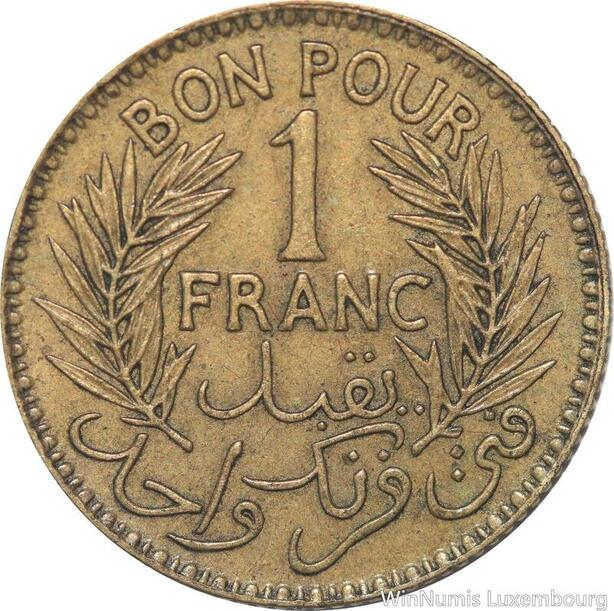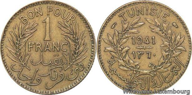 R8236 Tunisia 1 Franc AH 1360 1941 -> Make offer
