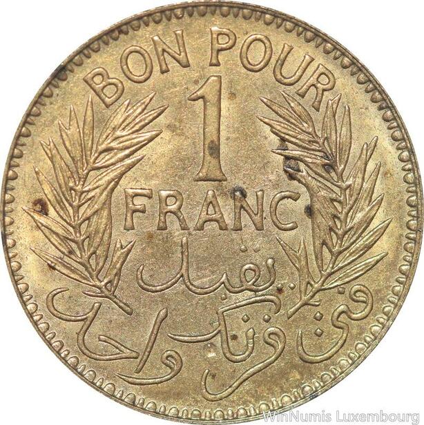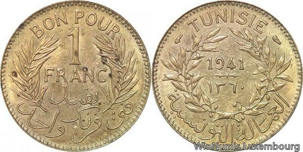 R8239 Tunisia 1 Franc AH 1360 1941 UNC -> Make offer