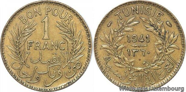 R8242 Tunisia 1 Franc AH 1360 1941 -> Make offer