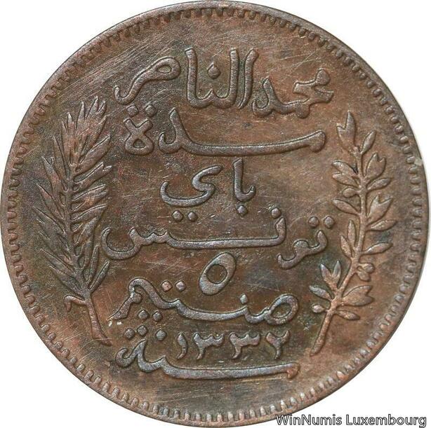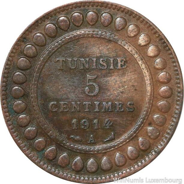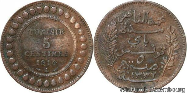 R8245 Tunisia 5 Centimes Muhammad al-Nasir Bey AH 1332 1914 A Paris > Make offer